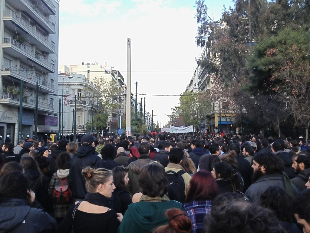 13:55 Πριν από λίγο ξεκίνησε η πορεία αλληλεγγύης από τα Προπύλαια που έχει μεγάλο όγκο και παλμό.